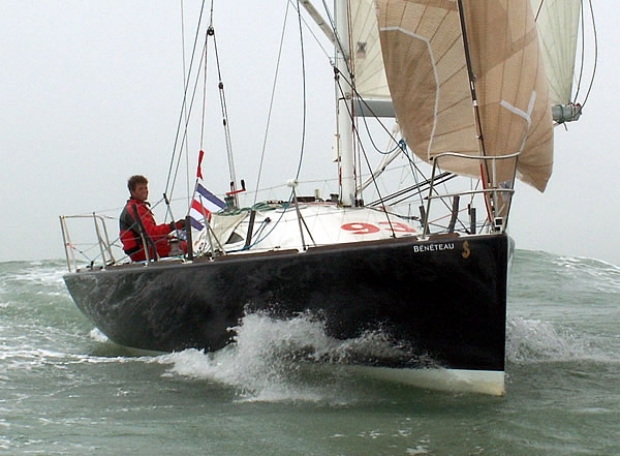 Anyone who has raced in one design will know that coming in half a length under the layline and trying to get two quick tacks near the mark is suicide. Now try that on your own, in 25 knots and a big sea - positively dangerous. Having got round the first mark without getting sunk or protested, I found myself in a bunch but at the back as we surfed downwind on the five mile run to a buoy off Port Bourgenay. I was in good shape and rounded the next mark in third place. The wind stayed at around 18/23 knots until midnight and gave us a great 25 mile run to Ile de Re when I was anywhere between third and seventh place. Gerald Veniard in first place was already well clear and showing everybody a clean pair of heels. During the 15 mile starboard tack to the south-west of the island I dropped to eighth. At first I thought it was due to the fact that I had a genoa up and it was a little outside its range but later a boat sailed right past me with the same configuration. It must have been my set up - something to ponder I think.