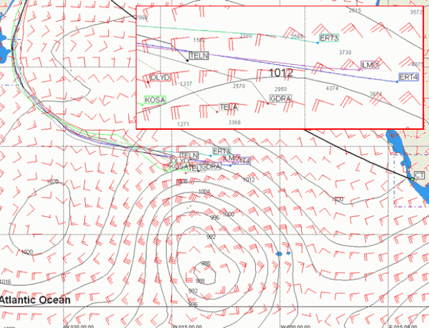 Meanwhile the lead trio are hanging on but the front is forecast to lessen in its intensity over the course of today, thus boat speed will drop off and it seems likely that all the boats will have fallen behind it over the next 24 hours. If Ericsson 4 can post a 550 mile day over the next 24 hours then she should be just ahead of it, but we suspect she won't.