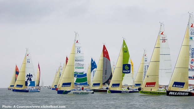 Two miles into the race, Laurent Pellecuer ( Docteur Valnet – Aromatherapie) and Jean Paul Mouren ( M@rseillentreprises) led at the offset mark. Both sailors joined forces earlier this year winning the Transat AG2R.