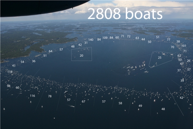 We have now counted the number of boats in the amazing picture taken from the Swedish Coast guard aeroplane from the Inport race last weekend, 2808 boats!!