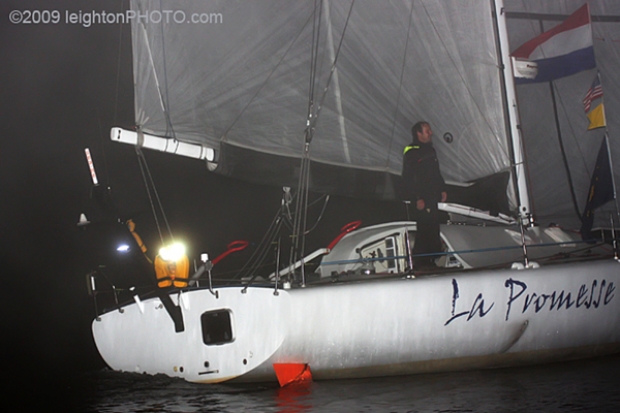 At 0510 GMT this morning, Dutchman Jan Kees Lampe and his Open 40 La Promesse reached Newport, Rhode Island to claim line honours in the 2009. Completing the 2805 mile course in a tome of just 17 days, 17 hours and 40 mins, he broke the previous 40ft record of 19 days, 11 hours and 19 minutes set by Simon Van Hagen in