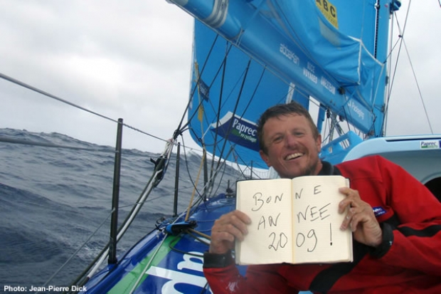 Dick is unharmed, there is no other damage reported to the boat and he is making a compass course of about 350 degrees towards the South Pacific high pressure system which will initially provide calmer winds and seas while he and his team assess the options.