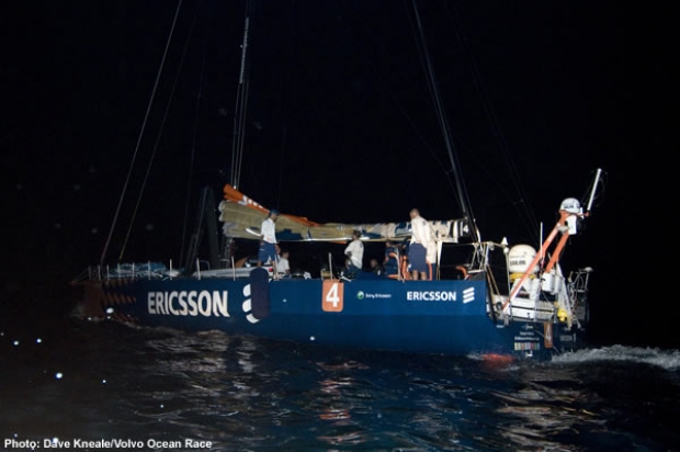 Ericsson 4’s big move came on day 12. The group of four boats - Ericsson 4, Ericsson 3, Puma (Ken Read/USA) and Green Dragon (Ian Walker/GBR), who had all chosen the middle lane through the Doldrums, were still tightly packed when Ericsson 4 disappeared into a well-positioned rain shower. She emerged 48 nm ahead of Ericsson 3 and sailing at twice the speed of anyone else. The rest of the group could only watch, as they sat, practically becalmed.