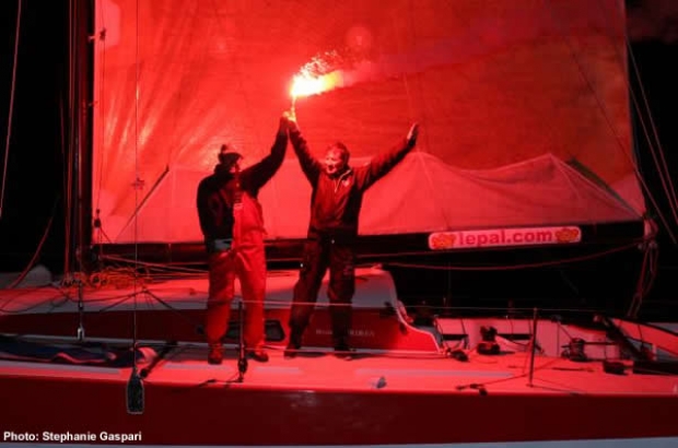 Bruno Jourdren and Kito de Pavant on Lord Jiminy-Lepal.com won the second 1000 Milles Brittany Ferries. The duo crossed the finish line off Saint-Malo at 22:13:05 with an accumulated elapsed time 6 days 11 hours 13 minutes and 05 seconds spent at sea.