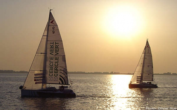 After Armel l'Cleach on board Crealine dominated the windward-leewards on Saturday it was the old Figaro hands who took over the reins in the offshore race. This turned into a three way match race between former Figaro winner Eric Drouglazet on David Oliver, Gildas Morvan on Cercle Verte and Erwan Tabarly on Thales.