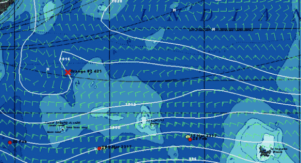 Once Geronimo is round the top of the Kerguelens tomorrow afternoon we suspect she will dive south again as ahead a fresh low is developing to the north and it is likely skipper Olivier de Kersauson will want to stay in the favourable winds to the north of the depression he is currently riding.