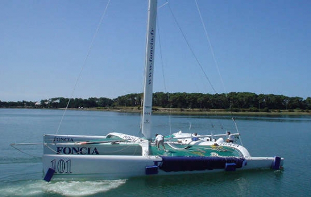 Foncia is now back on the water, repaired after her capsize in the ORMA circuit's Challenge Mondial Assistance race around Europe earlier this year.