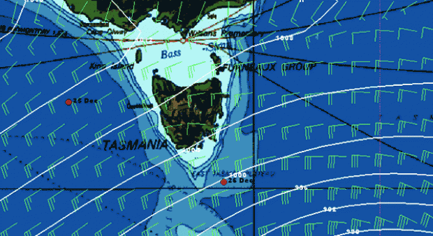 Position at 08:15 26 December: 44deg 44.00S 148deg 31.00 E