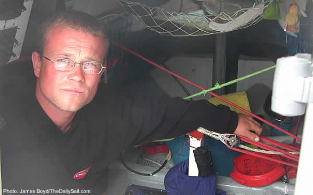 He adds "I had no breakages other than one batten in the mainsail and my specs, so I now look like an uncool Harry Potter with my old spare held together with tape and I got really bad sunburn on my backside when I was trying to dry my very spotty arse."