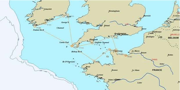 The course is a highly demanding one, through some complicated areas for navigation allowing for many tactical options. Half the race is coastal while the other half is offshore in the English Channel, the Celtic and Irish Seas. The course will have marks to be rounded off the Isle of Wight, the Irish lighthouses at Tuskar Rock and the more famous Fastnet Rock, also the Raz Blanchard and the Pointe de Barfleur, among others.