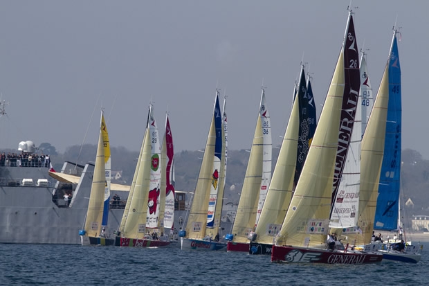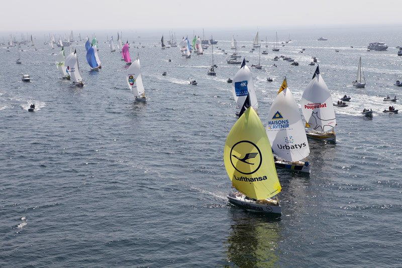 The 25 doublehanded Figaros competing in the Transat AG2R La Mondiale set sail from the Bay of Concarneau today at 1400 (local), bound for St Barts via a gate to the northwest of the Canary Islands. But the first hours of the 3,890 mile long course were set to be light.