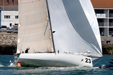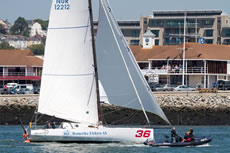 With some nerve and youthful spirit on our side, we were the only yacht (we have heard) to cross the start line under spinnaker... something to do with the narrow dead downwind channel we had to overcome, with jagged rocks on either side of us. Pretty intense sailing, and only pleasurable because we managed to pull it off! As we rounded Bard Head, in 35 knots of breeze, we were soon up to boat speeds of 15knots. The highest boat speed we physically saw on the GPS was 20 knots, but we think we probably experienced higher!