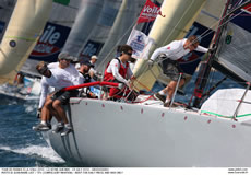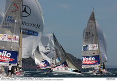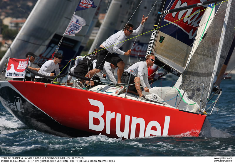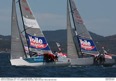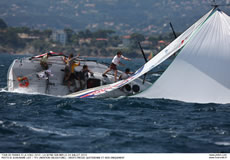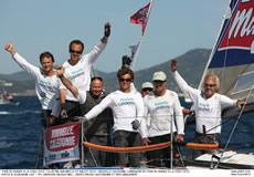 Appropriately Nouvelle Caledonie won the very last inshore race of the Tour. Bertrand Pace, the former match race world champion, took first place even before the Tour Voile fleet had left the English Channel. And since the fleet has enteed the Med has never let his major opponent alone. Courrier Dunkerque skippered by Daniel Souben, did succeed at least to escape Pace's tight control today to won the first race of the day. So the winners of this Tour Voile both won a race to end the one month long race around France. In third place is TPM Coych from the city of Hyeres. Even though Fabien Henry and his crew performed well in the Med, they didn’t succeed to overcome their deficit on the two leaders.