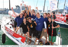 Today was good for the two English-speaking teams of this year's Tour Voile. First for the American boat Groovederci sailed two steady races to secure fourth place. “It was really fun today, we love this kind of wind “ said Deneen Demourkas, admitting she was a little bit disappointed not to be in the final top three. She said she regrets the lack of wind in this Tour de France. “Maybe our boat, which is the newest of the fleet is too rigid and surely our carbon mainsail is. With less than seven knots of wind we had some difficulties making good starts, but when the wind is over 11 we just fly! I would have loved to do better but being fourth is not a bad result”.