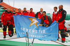 Crewman, Neal MacDonald described the turning point in the race: “The low point was having a fitting break at the top of Scotland that prevented us using our heavy weather jib for 10 hours. This allowed Groupama to get from 20 miles behind to 30 miles in front – heart breaking from a racing point of view, but the sort of price you pay in these type of racing boats when things break. When the failure occurred it was pitch black (as it always is when things go wrong!) and blowing 35 knots in a horrific seaway. But after that, it was fantastic sailing in flat water, something I’ve never experienced before around Scotland. The fastest part was just off the back of the Isle of Wight and these boats are great to sail, they’re just a big skiff. The Sevenstar Round Britain and Ireland was a really fantastic race.”