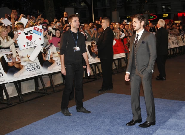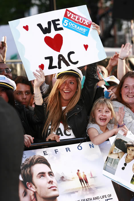 We were most impressed by the Velux 5 Oceans ‘plants’ in the crowd either side of the red carpet, put there by the race’s new PR company Hill & Knowlton. They were equipped with Velux 5 Oceans posters emblazoned with ‘I love Zach’ and were duly signed by the Hollywood star.