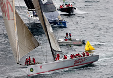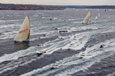 On the eastern side of the front start line, reserved for the largest boats, Grant Wharington staged a nail-biting and brilliant start with just seconds to spare at the helm of Wild Thing. The 100 footers - Bob Oatley’s Wild Oats XI and Sean Langman and Anthony Bell’s Investec Loyal squared off on the western side, while Stephen Ainsworth’s Loki timed things perfectly about a third of the way down the tightly congested line.