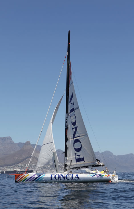 Michel Desjoyeaux: “On our arrival in Cape Town, we had the pleasure of being welcomed into port by Yves Gévin, Chairman of the Board within the FONCIA Group. We greatly appreciate being supported like that by a company director who, though he cannot be in our place, is always behind us. It’s important in difficult moments such as these, to be supported in this way. I’m very touched by it, as I am by all the numerous messages we’ve received, some of which are anonymous and whose authors I may never meet. Though these messages cannot repair the mast, they do enable the injury caused by this damage to be repaired and soothed. Thank you everyone…”