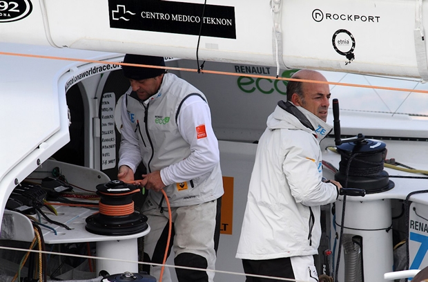 On tenth placed FMC, there is an interesting cultural mix, not just between the laconic Breton Ludovic Aglaor, an experienced co-skipper who sailed with Bruno Peyron on the Jules Verne Trophy aboard the Orange 2 maxi-catamaran, and the young Catalan Gérard Marín, but their different sailing culture so far has been from different ends of the spectrum – Aglaor on giant multis and Marín on 6.5m Minis. On the IMOCA Open 60s their cultures, experiences and backgrounds are blending to form a strengthening unit.