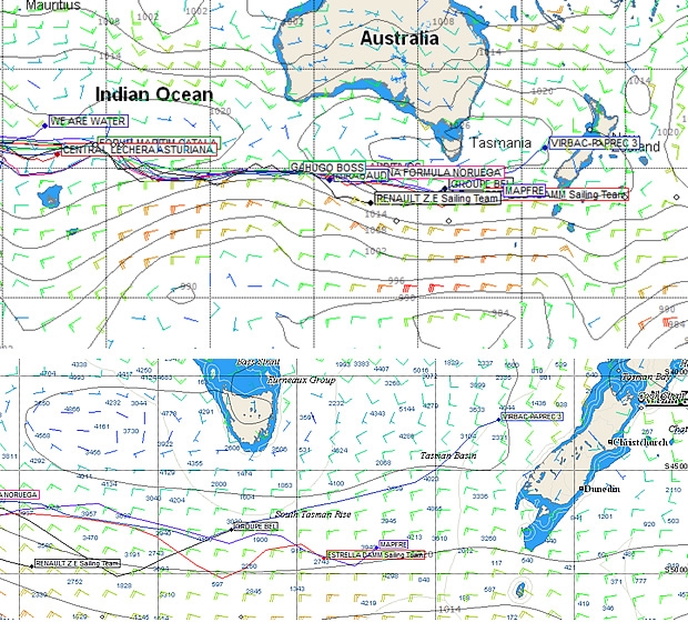 | 7 | Boris Herrmann - Ryan Breymaier | NEUTROGENA FORMULA NORUEGA | 46 25.30' S | 122 53.18' E | 15.8 | 99 | 14.6 | 350.6 | 13708.5 | 1778.1 |