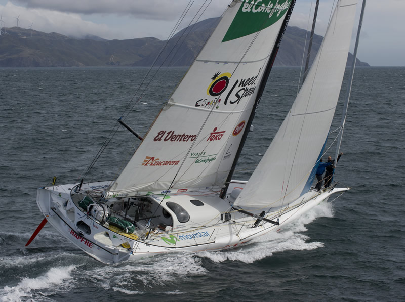 In ninth place Dee Caffari and Anna Corbella are into what promises to be a breezy, bumpy passage across the Tasman Sea, trying to stay ahead of the wind and large seaway being generated by an active depession. As it stands now, the female duo look to have little margin for error or downtime, but will be doubly relieved to be in shape to pass Wellington, with their Owen Clarke-designed GAES Centros Auditivos was launched out of Hakes Marine in 2007. The girls had a difficult electrical problem which took them six hours to get to the bottom of, but were making good speed in pursuit of Hugo Boss, which has had some slow spells last night and today.