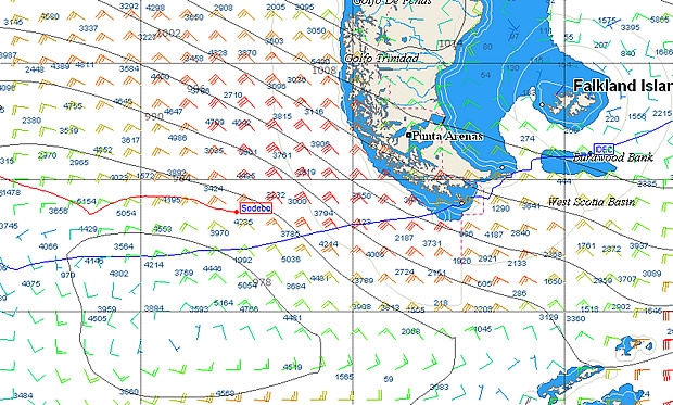 At the latest sched Sodebo has 537 miles to reach the Horn and is making good progress in typical northwesterlies ahead of a depression. At this speed Sodebo will be passing the Horn at around lunchtime tomorrow.