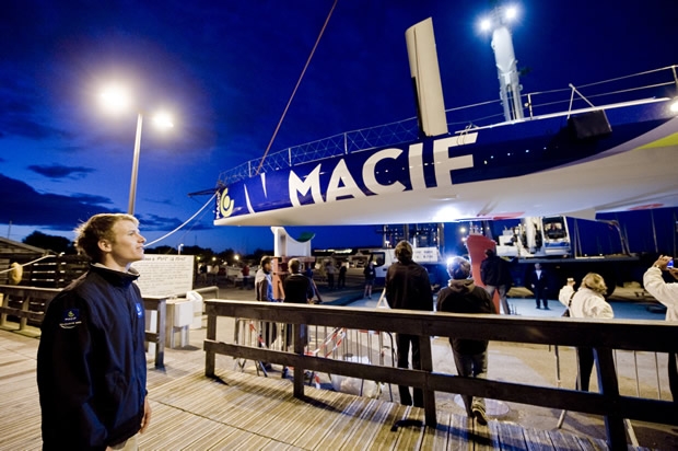 François Gabart's new IMOCA 60 MACIF, was launched today at the CDK yard in Port la Foret. The boat is another VPLP-Verdier design and a sistership to Michel Desjoyeaux's latest Foncia (now Armel Le Cleac'h's Banque Populaire).