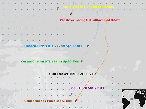 In the 15:00 GMT position poll on Tuesday, Phesheya-Racing and Sec. Hayai were still in the easterly breeze, separated by 21 miles and closing down rapidly on Financial Crisis and Cessna Citation, taking over 40 miles from the lead of Nannini and Peggs since dawn as the longer, westerly option began to look increasingly favourable. As the South Africans head towards the Doldrums, Leggatt and Hutton-Squire are consistently logging and photographing wildlife and marine debris as part of the scientific research programme and partnership between the GOR Organisation, the GOR teams and the Environmental Investigation Agency (EIA): “Last night we sailed close past a large, white plastic box floating on the surface, the first significant sign of rubbish we have seen in several days,” notes Hutton-Squire. “Sea life tally today: thousands of flying fishes and a lone petrel. Nothing else.”