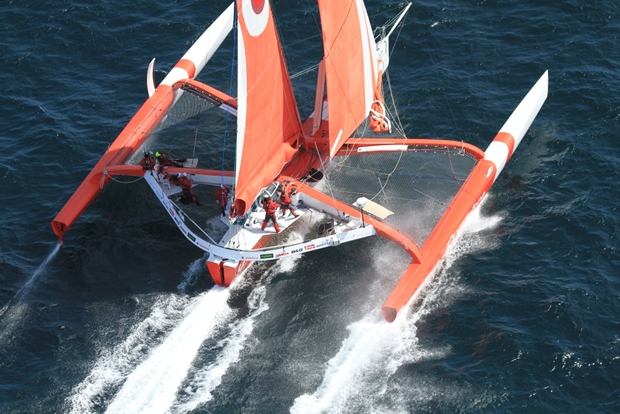 The 60 foot trimaran took air from the start, pushing ahead of other competitors and disappearing into the horizon before many of them had rounded North Head.