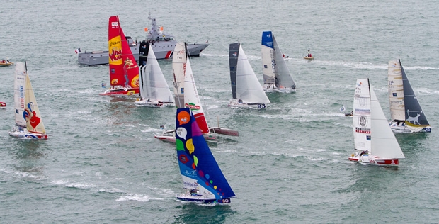 Under a watery autumn sunshine, powered by a light breeze of 7-12 knots, it was the reigning Transat Jacques Vabre IMOCA Open 60 title holders Safran with Marc Guillemot and Yann Elies which won, although Vincent Riou's PRB led for much fo the race, but were disqualified for being OCS along with Alex Thomson's Hugo Boss and Jean-Pierre Dick's Virbac Paprec 3.
