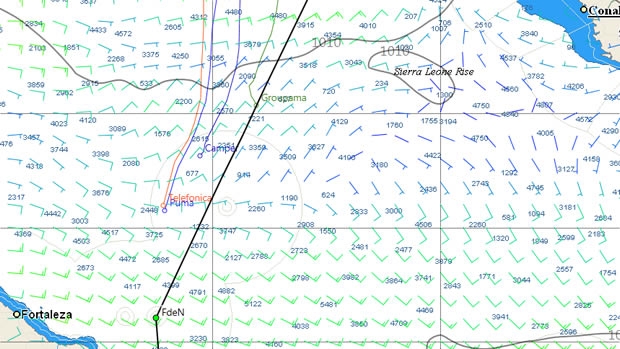 Yesterday evening, as the leaders were exiting the Doldrums, third placed Camper had closed to 104 miles on Puma, Groupama to 255 miles or gains of 42 and 59 miles respectively. However the net result now that the lead duo have been back up to speed for a few hours has worked against the boats behind. Camper, still in the thick of the Doldrums, has now dropped back to 156 miles astern of Puma while Groupama is back to a 334 mile deficit. Assuming that the Doldrums peter out in much the same place as they did for Puma and Telefonica yesterday, then Camper should emerge soon. However due to her position further east, Groupama has had to take a different tactic and gybed to the SSE this morning at around 0100, the reason being that the Doldrums appear to be further north where she is and she should be through and into the southeasterlies marking the exit to the Doldrums at around 5°N, or at some point this morning. Presumably as soon as she strikes the new breeze she will tack for the next mark of the course at Fernando de Noronha, off the Brazilian coast. At the latest sched this was 283 miles away for Puma. The lead duo should continue to 'extend the elastic' today as the further south they sail, the more the wind will build, the faster they will go.