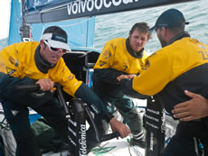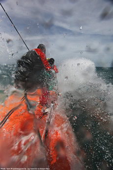 “Conditions on board are still rough though, and we continue to slam into each successive wave with a shudder like that of you car through a big winter’s pothole; there is absolutely no give,” Puma MCM Amory Ross said. “We’re still in urgent need of sleep, too, but everyone’s resigned to the fact that it’ll have to wait until the hotel. Even in the low visibility, Camper occasionally pops into sight off the bow, and we know Abu Dhabi is lurking somewhere close behind our stern, so the strategy from here seems simple: don’t give up too much leverage and play each shift like it’s the last. The racecourse has become small enough that any gain is an important one—regardless of its size—and it promises to be a busy 36 hours of hard work fighting for every length of distance on the competition. Anything can happen.”