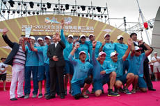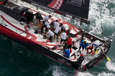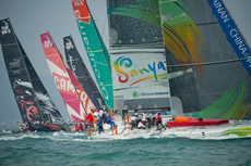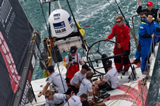 Mike Sanderson’s hometown heroes on Team Sanya were slow out of the start and at one stage pulled up to third, but eventually they were just edged back down into sixth by Franck Cammas’ Groupama.