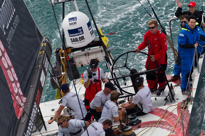 Telefónica went into the race under some pressure after a last minute change of rig and with two poor performances in the three previous in-port races. But a tactical decision to be the first to tack in from the left on the first beat saw them to pull ahead of the six strong fleet. Despite a challenge from Puma Ocean Racing when the jib sheet on the Spanish boat got caught under their kite after their drop at the leeward gate. With Puma slickly rounding the gate, the US team pulled level but ultimately the Spanish surged ahead once again to to seal another valuable win, finishing 41 seconds ahead of Puma. It was the second victory in four in-port races for Iker Martínez’s team, which has also won all three offshore legs.