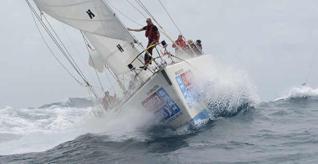 Round the world crew member, Tim Burgess, 31, from Petersham, NSW, Australia, was on the foredeck changing a headsail when broke his left leg above the knee.