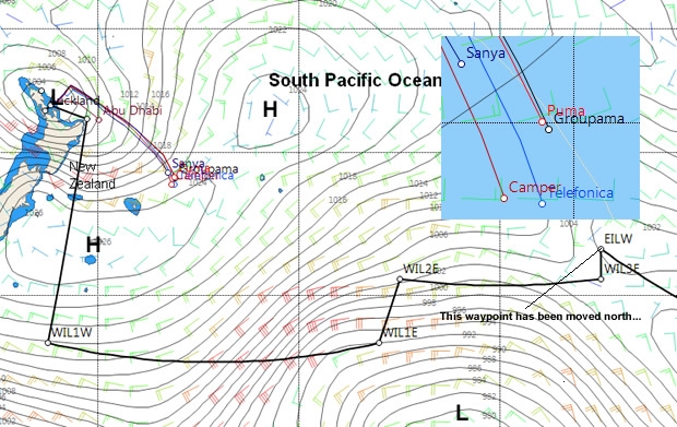 This scenario will be one that allows Abu Dhabi to regain some miles. Today as the leaders have a light day so she will still be in the breeze and even now she is the fastest in the fleet. With the leaders have to make a detour south to get around the high, it looks likely that Abu Dhabi will be able to sail a shorter course.