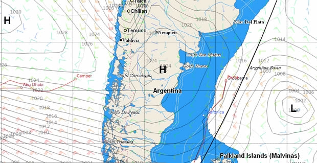 At present the two boats are around 250 miles off the Argentine coast and over the last 24 hours they have been making slow progress north. However in the last three hours the southwesterlies breeze has filled in between the depression offshore and the high over the South American continent. As a result both boats are now making speeds in the early 20s. If they can keep up this pace then they should be able to get far enough north so that they remain in breeze as the high shifts east, away from the South American continent and into the Atlantic, over the next 24 hours. However beyond this the last 300-400 miles look set to be light and upwind.