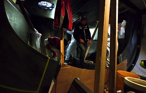 “We had to bring everything,” says Cox of how they got set up in the remote Chilean port. “Puerto Montt is an amazing place, a stunning landscape. There is a human kindness there - everyone wanted to help. It was unfortunate, though - if we wanted to repair a steel trawler, no problem at all, but for what we wanted to do there was nothing available, so we had to be totally self-sufficent. Because both containers were in transit, we were lucky enough to get into the Team New Zealand base, and the guys leant us some tools and could get what we wanted materials-wise.” All of which was shipped.