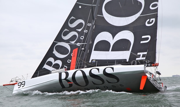 Hugo Boss returns to UK in time for Aberdeen Asset Management Cowes Week before starting her preparations for October and the start of the solo non-stop round the world race out of Les Sables d’Olonne.