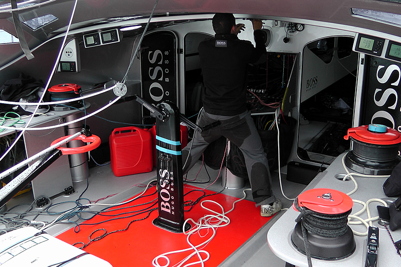 The boat has also undergone a repaint at Destys Marine at Hamble Point, where her refit was carried out. The team’s MD Stuart Hosford says of the paintjob: “For this boat going into the Vendee Globe, we wanted to try and do something. It has been a great process working with Hugo Boss on this. They are a fashion company so the look of the boat is almost more important than the speed or the performance. We have gone a little F1 – very chrome and silver, performance-based - a little bit ‘accessories’ with orange touches here and there and vertical branding on the sails, which means we get away with reefing issues. We are pretty proud of how the boat looks now...”