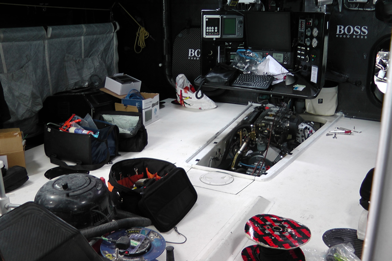 The previous engine has now been replaced with a Lombardini, which is lighter and is a make the team knows better. The net result of all these changes in terms of all-up weight is that the boat weighs in at around 8,300kg, or around 50kg lighter than before. “Mike [Golding] reckons Gamesa is down to 8,000kg. The main different is that we have a steel fin, which weighs about 1,000 kg whereas Mike’s carbon one will weigh about 300kg,” says Thomson.