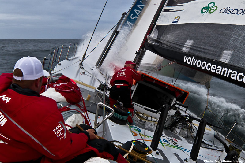 Fourth place into Galway would be enough to give Groupama overall victory in this Volvo Ocean Race, and barring a disaster this is looking like something they will achieve comfortably as on board Abu Dhabi Ocean Racing they have issues. “We normally struggle a bit, but now we’re struggling a lot,’’ reported skipper Ian Walker. “I suspect we’ve got some damage to our keel, but there’s no way to find out till Galway.”