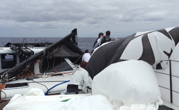 Without enough spar left to set a jury rig, Phaedo is headed back towards LA under power, making about 6 knots. At this speed the team reckons they have about 250 miles range in fuel, which means they will require fuel assistance to complete the remainder of the trip to the coast.