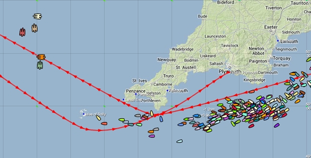 After passing Portland Bill yesterday evening, the IRC Zero fleet, en masse, dug into Lyme Bay, but since passing Start Point have pushed south of the rhumb line to the Lizard.