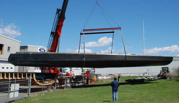 While Jim Clark's new VPLP-Verdier 100ft maxi is in the final stages of construction up in Maine, down at New England Boatworks in Portsmouth, Rhode Island, the hull of George David's Juan K-designed 88 footer has emerged, fresh from her mould.