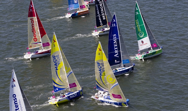 Plymothians will be excited to learn that since 1430BST one of their local sailors, Sam Goodchild (Team Plymouth) had moved up to third place. This is the fourth Solitaire for the 24-year-old who finished 11th in 2013, the best British result since 1975. He was a little nervous before this morning's start: “I'm just looking forward to getting out there and getting racing. We've got 4 or 5 hours sitting on the water before the start so I'll just try to take it easy, try to get some rest and not get too stressed sitting there on your own watching the fact that there's no wind and thinking about Leg 1”.