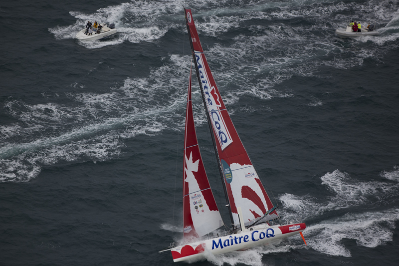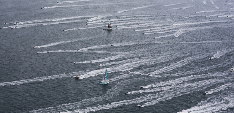 In the IMOCA 60s it was Vincent Riou and PRB that got away fastest but was soon outstripped by race favourite and 2012 Vendee Globe winner, Francois Gabart on MACIF, who were followed at the turning mark by Jérémie Beyou on Maitre Coq.