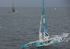 Among the Multi 50s it was Yves le Blevec on the trimaran Actual was that at Cape Frehel was ahead of Erwan Le Roux's Fenetre a Cardinale with Lalou Roucayrol's Arkema Region Aquitaine, back in action after the capsize in last year's Transat Jacques Vabre.