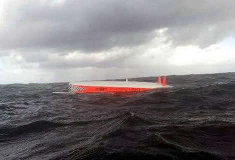 The greatest carnage has occurred in the Multi50 fleet where of 11 starters, five have so far retired. Loic Fequet’s trimaran Maitre Jacques broke the bow off her starboard float, a repeat of a problem suffered a year ago. Gilles Buekenhout on the venerable Irens 50 tri Nootka broke her rudder and had to be towed to Roscoff where he arrived around 1600hrs CET this afternoon. One of the boards broke on Hervé de Carlan's catamaran Delirium, while the main exploded on Erik Nigon's Nootka sistership Vers un monde sans SIDA and Alain Delhumeau's Eric Lerouge-designed trimaran Royan was dismasted.
