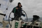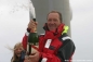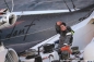 Thierry Martinez was in the air as B&Q Castorama crossed the start line of her non-stop round the world attempt